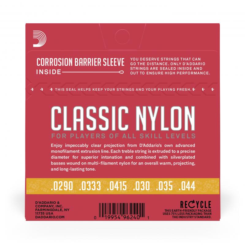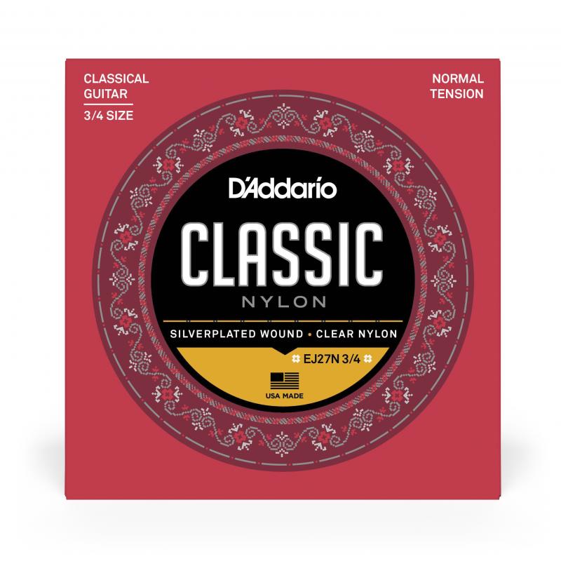 Les cordes pour guitare classique de la gamme D'Addario EJ27 sont idéales pour les débutants et les étudiants. Ce jeu est optimisé pour être utilisé sur une guitare classique à l'échelle 3/4. Il contient 3 cordes aiguës en nylon translucide et 3 cordes graves en cuivre plaqué argent (âme en nylon) pour des sonorités chaudes et durables.