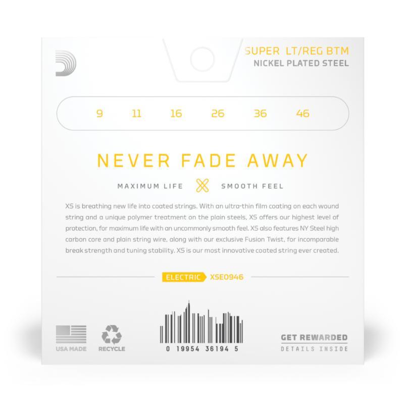 Les cordes XS Nickel bénéficient de la durée de vie la plus longue de toutes les cordes pour guitare électrique D'Addario, avec un toucher doux et rapide sans problème d’effilochage ou de craquelure de la gaine au fil du temps, grâce au revêtement XS ultrafin.