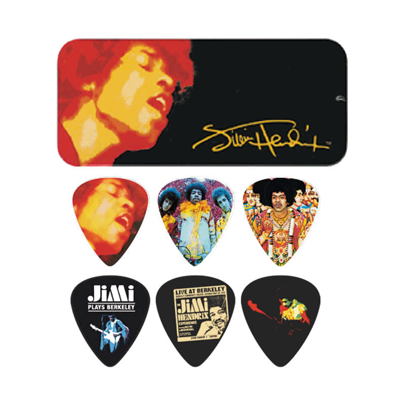 Largement reconnu par les critiques et par de nombreux fans, Jimi Hendrix est considéré par beaucoup comme l'un des guitaristes électriques qui a eu le plus d'influence dans l'histoire du rock. Afin de commémorer les œuvres phares de l'artiste, Dunlop a créé cette collection de médiators Celluloid à l'effigie de ses albums.