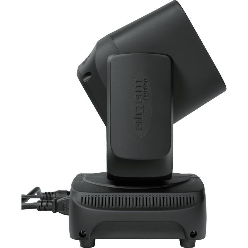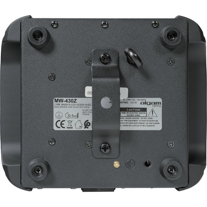 Malgré sa puissance, la lyre MW430Z conserve un format compact et un poids plume de 3 kg, facilitant son transport et son installation au sol comme sur un pont lumière. Son embase robuste permet une fixation sécurisée en position tête en bas, offrant des options de montage polyvalentes pour toutes vos prestations.