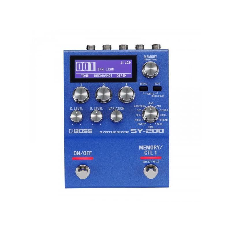 Procurant tout un univers de riches sons polyphoniques d'inspiration analogique dans un encombrement minimal, la SY-200 permet aux musiciens de profiter facilement de l'expressive technologie de synthétiseur BOSS pour guitare et basse. Prolongeant l'expérience ludique et instantanément gratifiante de la fameuse SY-1, cette pédale bleue inspirante procure davantage de sons et de possibilités de les modeler, et 128 mémoires pour stocker vos créations sonores. Ses deux commutateurs au pied sont conçus pour le contrôle précis en temps réel, et il est possible, pour aller plus loin, d'ajouter d'autres commutateurs au pied, une pédale d'expression ou un contrôleur MIDI externes.