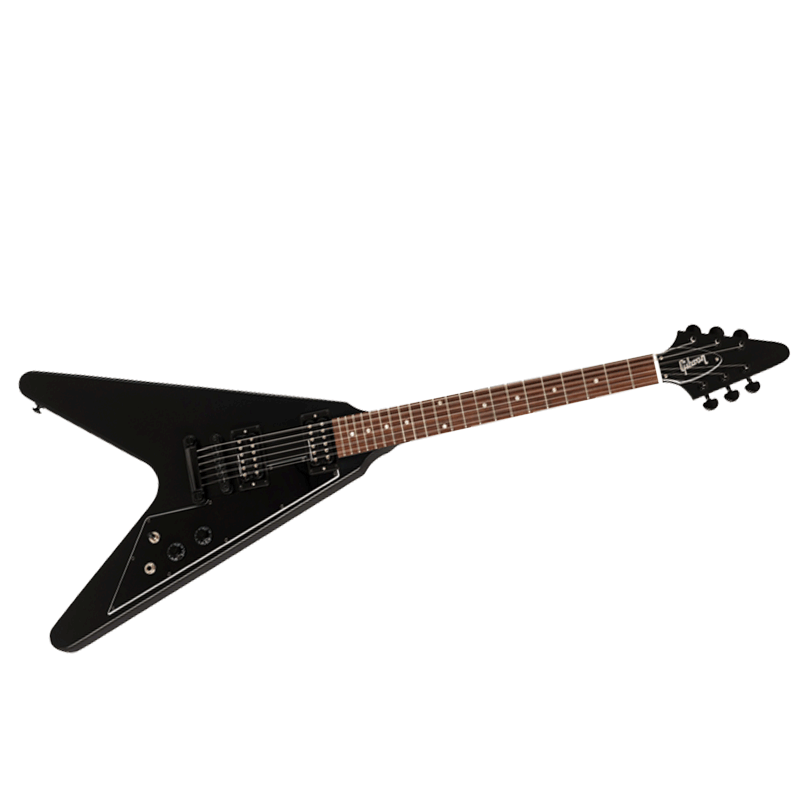 La guitare électrique Gibson Flying V 2019 en finition Satin Ebony possède 2 micros Dirty Fingers +