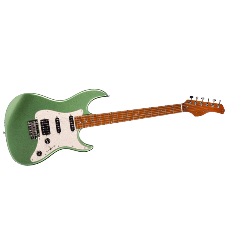 Corps Aulne, manche vissé en Erable torréfié, touche 22 frettes en Erable torréfié, micros HSS avec aimants Alnico 5.