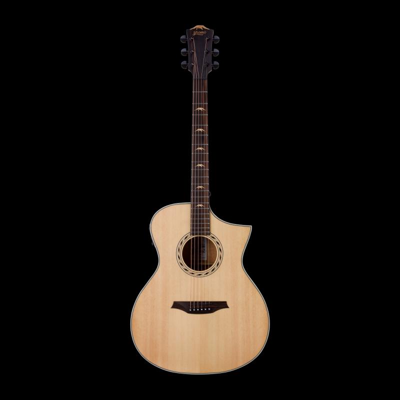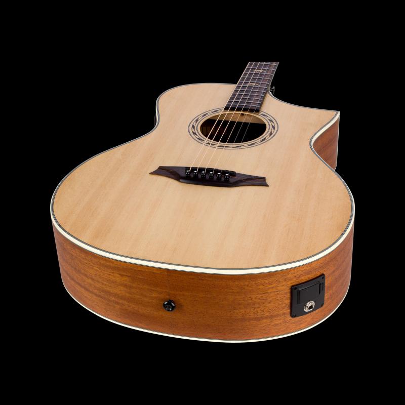 La guitare BROMO BAA4CE adopte un gabarit Auditorium Hillside, une table en Epicéa, un dos, des éclisses et un manche en Acajou ainsi qu'une touche en Ebène, le tout magnifié par une finition satinée. La présence d'un préampli 3-Band EQ Bromo BZP1 vous permet d'électrifier votre guitare.