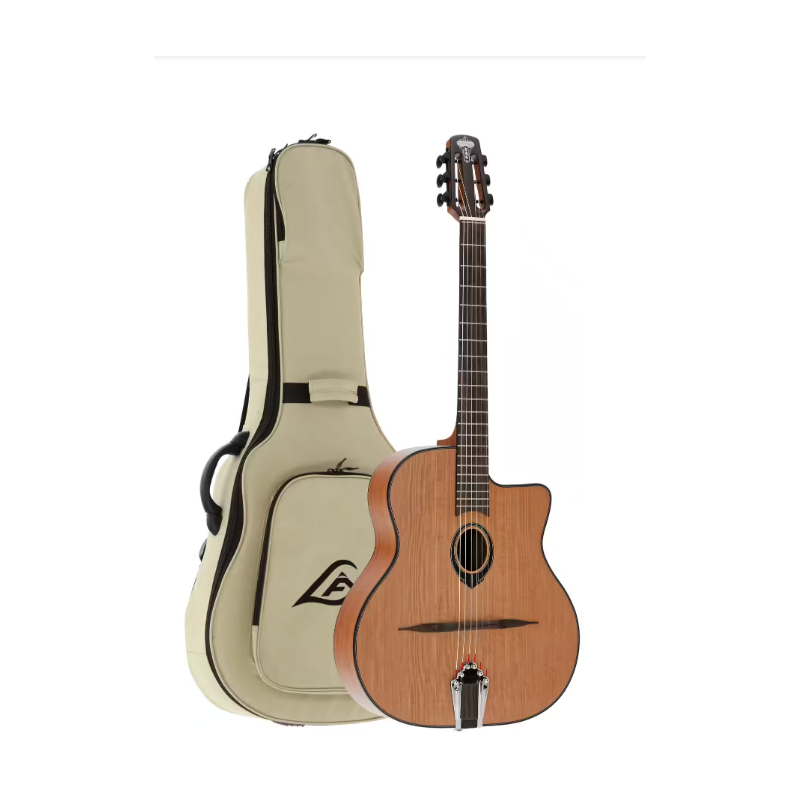 La série Swing Lâg s'inscrit dans la lignée des guitares qui ont façonné l'identité du jazz manouche, né dans les années 1930 autour de Django Reinhardt et du Hot Club de France. À Paris, la silhouette iconique des guitares de l'époque a défini un standard : une caisse au caractère très " percussif ", une réponse rapide et une projection capable de porter un ensemble acoustique. La SL100 reprend cet ADN tout en restant particulièrement accessible dans la gamme, avec une fabrication régulière, des choix de bois pertinents et des équipements fiables pour jouer souvent, longtemps, et sans se compliquer la vie.