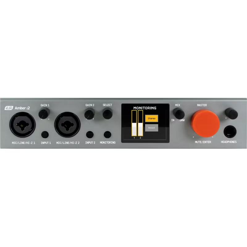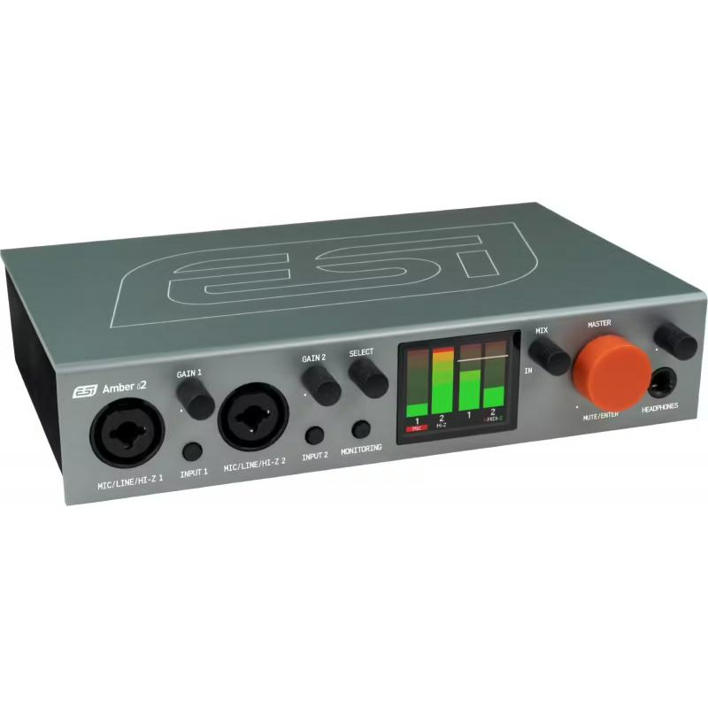 L'ESI Amber i2 est une interface audio USB-C 2 entrées/2 sorties conçue pour les musiciens, les producteurs et les créateurs de contenu. Elle est équipée de deux préamplis micro de classe A avec alimentation fantôme +48 V, de deux entrées Hi-Z pour guitare ou basse électrique et de ports MIDI bidirectionnels. Les sources audio externes et les moniteurs de studio peuvent être connectés à l'aide d'entrées/sorties ligne jack TRS 6,35 mm symétriques. Le système ADM (Advanced Direct Monitoring) permet aux utilisateurs de régler le niveau de volume entre le signal d'entrée et la lecture du DAW, garantissant ainsi un monitoring sans latence.