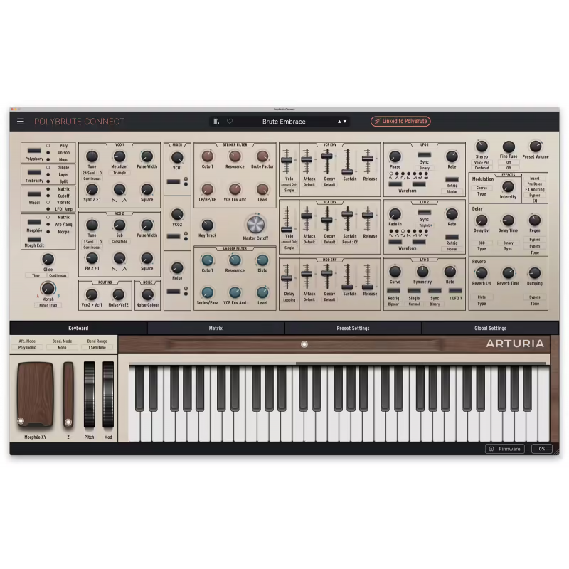 PolyBrute Connect offre une passerelle cohérente entre votre PolyBrute et vos projets studio virtuels. Créez vos sons directement dans votre DAW avec un plugin miroir. Organisez vos patchs, importez facilement vos nouveaux présets et vos banques de sons. Contrôlez le PolyBrute en temps réel avec chaque modification de paramètre reflétée entre le synthé et le logiciel.