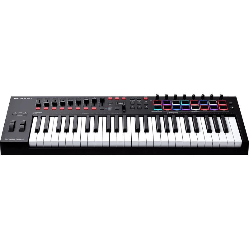 Le clavier-maître Oxygen Pro 49 est un outil puissant pour les musiciens, pré-mappé pour une utilisation facile avec de nombreux logiciels de production. Avec ses 49 touches, 9 faders, 8 potentiomètres et 16 pads, il offre une expérience de création fluide et intuitive. Ses fonctionnalités avancées comme Smart Chord et Smart Scale simplifient la composition.