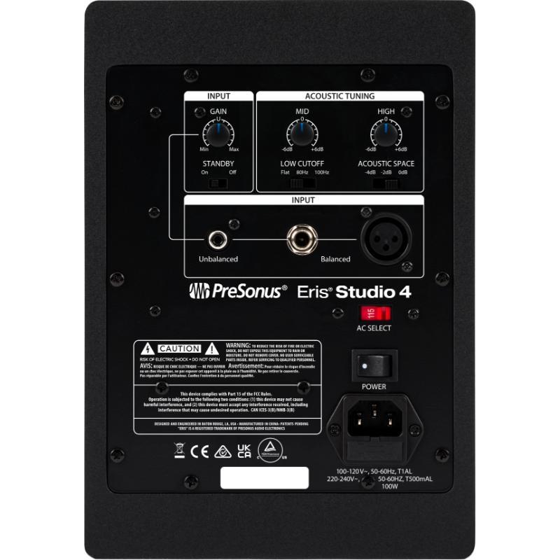 L'Eris® Studio 4 instaure une nouvelle norme pour les moniteurs de studio compacts. Avec une quantité de graves surprenante et une zone d'écoute idéale large et bien contrôlée, vous pouvez bénéficier d'un monitoring précis de haute qualité, même dans les espaces de mixage les plus restreints. Conçu pour des performances supérieures dans les home studios et les petites régies de mixage professionnelles, l'Eris Studio 4 associe un choix d'entrées à une précision sonore qui le placent dans une classe à part. Le guide d'ondes EBM (Elliptical Boundary Modeled) conçu sur mesure offre une meilleure réponse dans les hautes fréquences qui vous permet d'entendre les détails les plus fins de votre mixage, tandis qu'une large dispersion horizontale sur 120 degrés crée une large zone d'écoute idéale avec une imagerie stéréo réaliste. La dispersion verticale étroite réduit les réflexions de votre plan de travail, et le tweeter à dôme en soie assure une reproduction vive et précise des transitoires. Le haut-parleur pour basses fréquences de 4,5" (11,4 cm) en composite tissé offre avec beaucoup de punch des basses fermes et claires que ne laisse pas supposer la taille réduite de l'Eris Studio 4. L'enceinte à évent et la bi-amplification de 50 W se combinent pour maximiser la réponse des basses et autoriser une étonnante descente de l'Eris Studio 4 jusqu'à 55 Hz – sans caisson de graves ! Le choix d'entrées convient à quasiment toute source de niveau ligne, des tables de mixage aux interfaces audio et autres. Vous pourrez sans aucun problème brancher les enceintes Eris sur pratiquement tout.