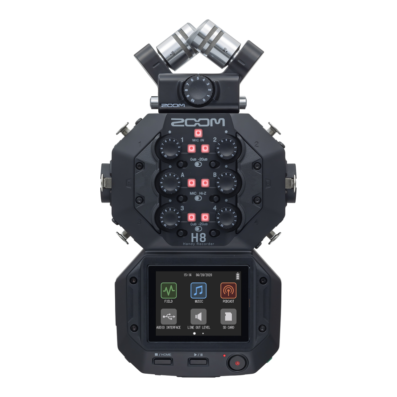 Le ZOOM H8 amène l’enregistrement mobile plus loin encore ! Disposant de 4x entrées XLR, de deux entrées XLR combo et d’une capsule XY amovible, il propose 3 applications, adaptées aux usages suivants : la première, FIELD offre jusqu’à 12 pistes en enregistrement (incluant la piste Maître et la piste de sauvegarde), et travaille en haute résolution jusqu’à 24 bits / 96 Khz.