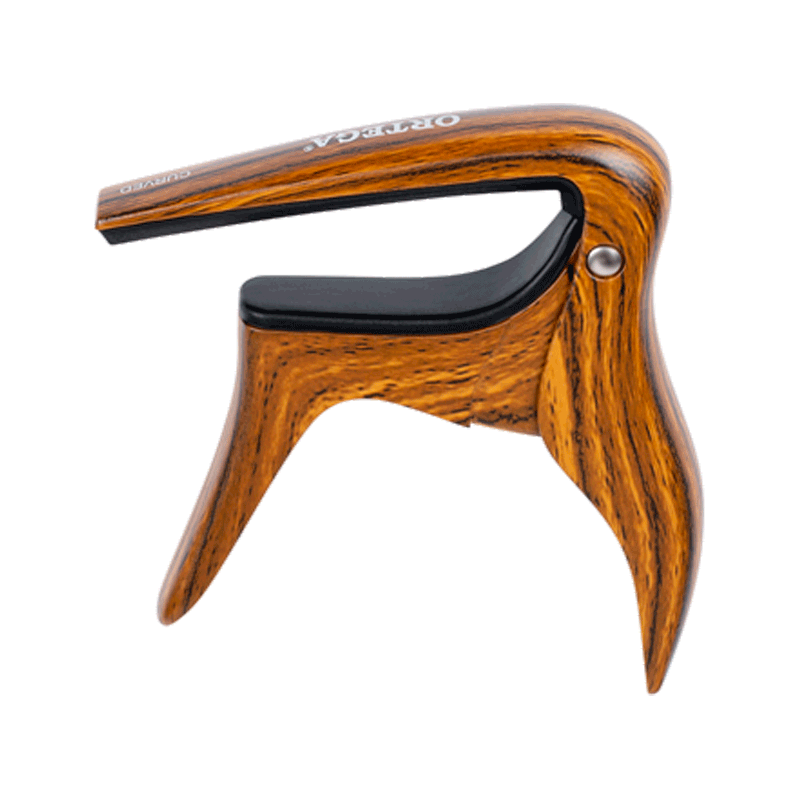 Capodastre pour guitare et basse touche bombée jusqu'à 52 mm de largeur, décor noyer