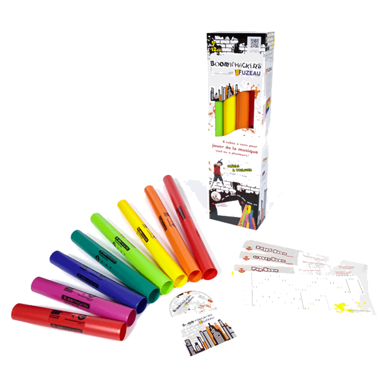 Le pack boomwhackers est un ensemble complet pour faire du rythme et reproduire 12 morceaux de musique sur des styles modernes : pop, salsa, reggae, rock, ethnic, dance…