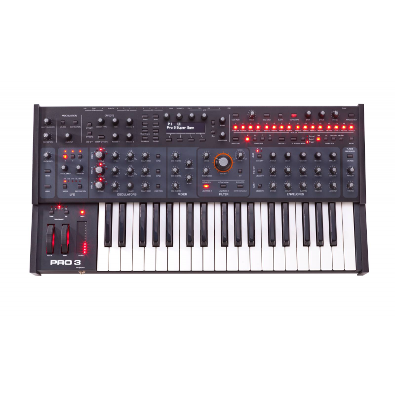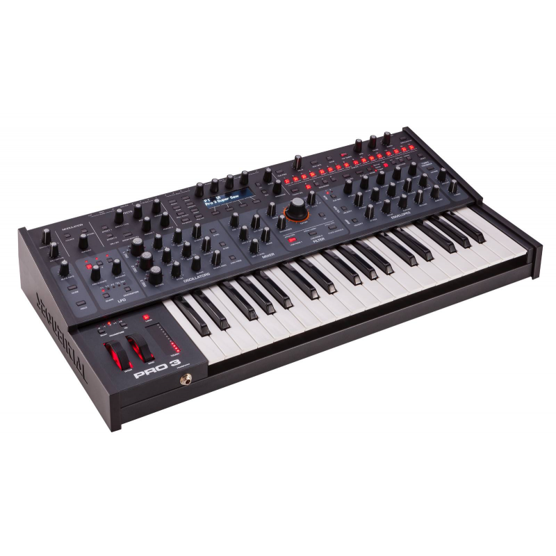 - 3 filtres analogiques classiques: Prophet-6, OB-6 et filtre Ladder - 2 VCOs - 1 oscillateur à table d'ondes - Séquenceur 4 phrases x 16 pistes x 16 pas - Matrice de modulation 32 emplacements - 4 entrées et sorties CV - Double effet numérique - Séquenceur 16 pistes - Arpégiateur - 512 presets + 512 presets utilisateur - 2 sorties ligne sur Jack 6,3 mm - 1 entrée ligne sur Jack 6,3 mm - 4 entrées CV sur mini Jack 3,5 mm - 4 sorties CV sur mini Jack 3,5 mm - 1 sortie Gate sur mini Jack 3,5 mm - Entrée pour pédale de sustain - Entrée pour pédale d'expression - MIDI In/Out1/Thru/Out 2 - Sortie casque sur Jack stéréo 6,3 mm - Port USB - Dimensions: 673 x 89 x 330 mm - Poids: 7,25 kg